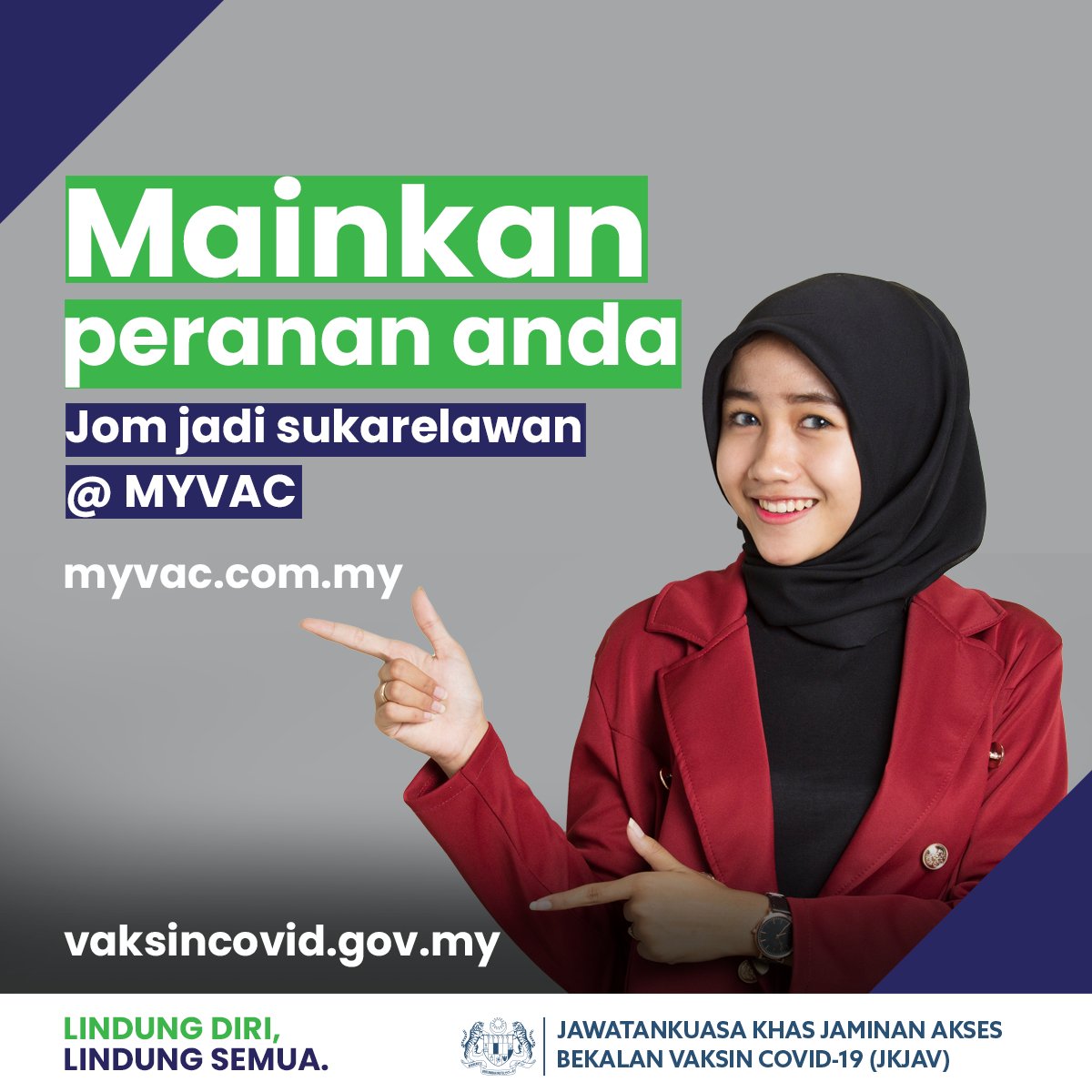 Mar 17, 2021 · pendaftaran myvac yang kini dibuka kepada orang ramai mulai hari ini melalui laman web www.myvac.com.my. Mar 15, 2021 · myvac merupakan satu inisiatif kesukarelawanan bukan kesihatan. Orang ramai boleh mendaftar sama ada sebagai sukarelawan am ataupun sukarelawan perubatan, dan ditugaskan di pusat pemberian vaksinasi (ppv) di seluruh negara. Apr 12, 2021 · myvac terbuka kepada semua rakyat malaysia berumur 18 tahun ke atas.