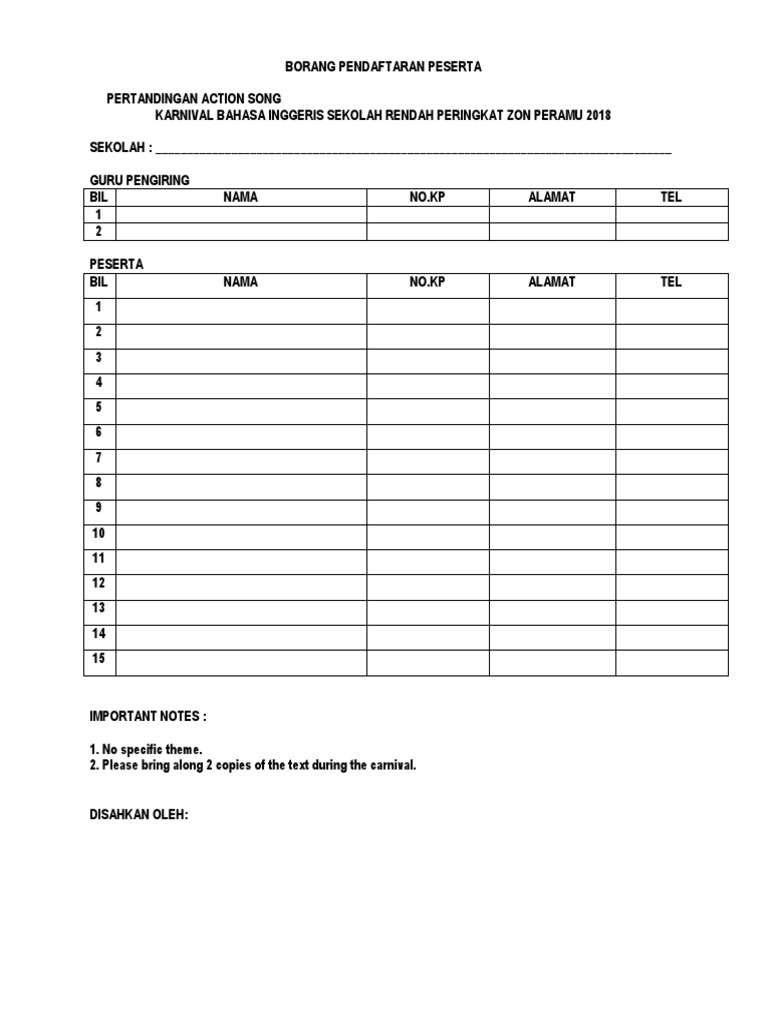 Satu borang untuk seorang peserta. Contoh borang pendaftaran peserta untuk kejohanan sukan tahunan sekolah by deenars. Posted by slpm bersih berseri. Satu borang untuk seorang peserta.