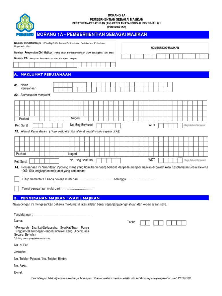 Perkeso Borang Pendaftaran Majikan. Borang pendaftaran id portal perkeso socso portal id registration form jenis permohonan application type a2. Bagi tujuan pendaftaran, majikan dikehendaki mengisi borang pendaftaran majikan (borang 1) serta borang pendaftaran pekerja (borang 2) bersama dengan dokumen yang ditetapkan (sila dapatkan senarai semak menerusi laman sesawang atau pejabat perkeso).