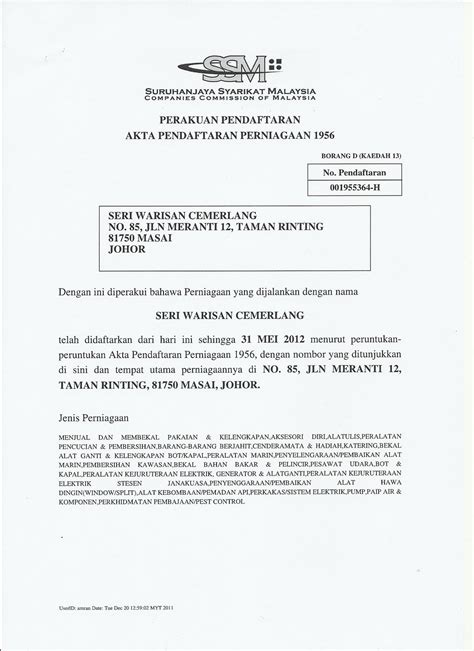 Borang Perakuan Pendaftaran Ssm. Maybe you would like to learn more about one of these? View ssm certificate.pdf from cob bwff 3013 at northern university of malaysia.