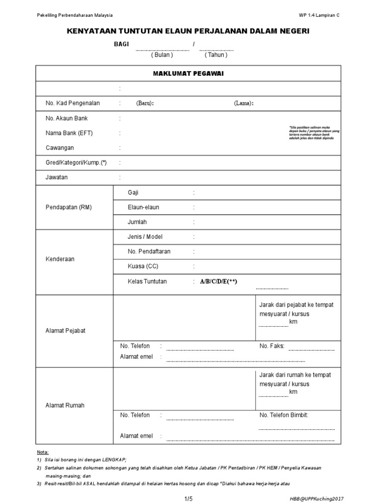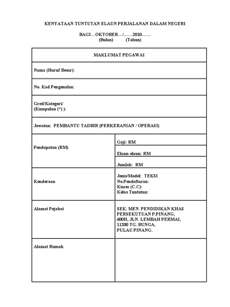 Borang Tuntutan Perjalan Kosong Pdf