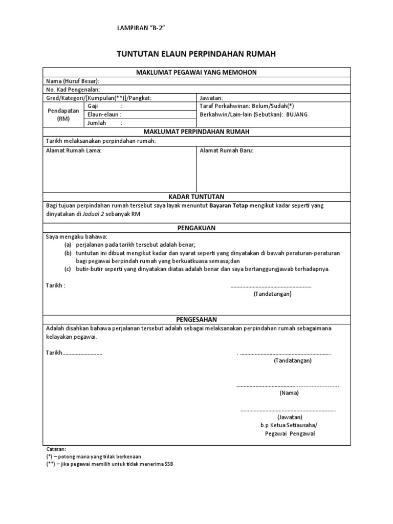 Borang Tuntutan Elaun Perpindahan Rumah