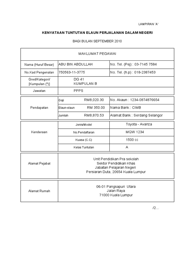 Contoh Tuntutan Perjalanan Pdf