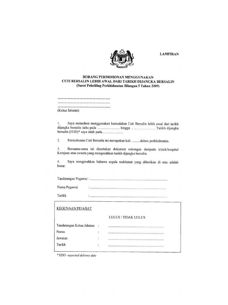 Surat Permohonan Cuti Bersalin Awal 14 Hari Pdf