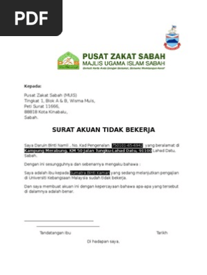 Surat Akuan Tidak Bekerja Zakat Sabah Wwwww Pdf