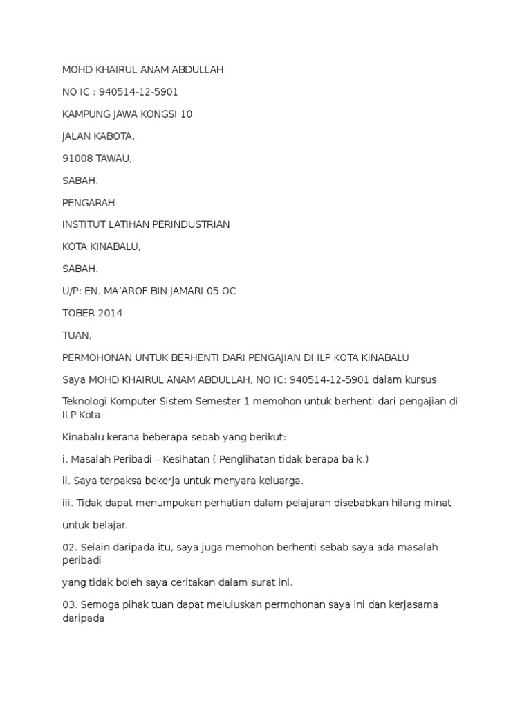 Surat Rasmi Berhenti Belajar Uitm Surat Ras