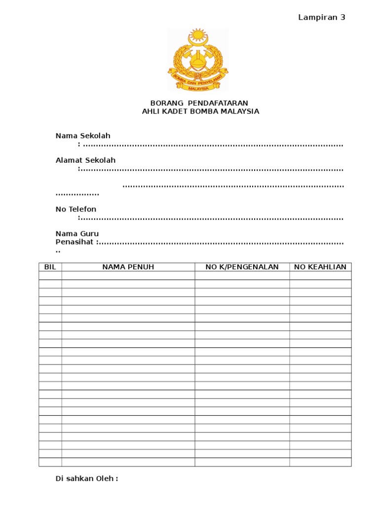 Kadet Bomba Lampiran 3 Borang Pendaftaran Pdf