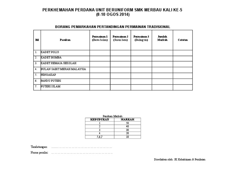 Borang Pemarkahan Pertandingan Permainan Tradisional Pdf