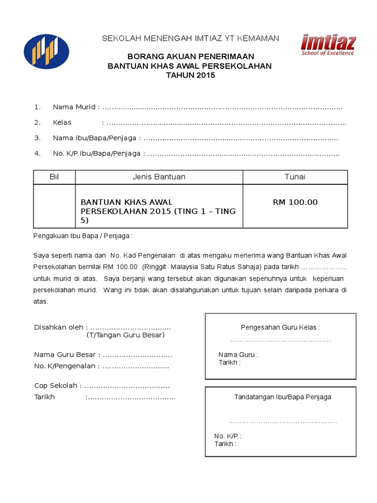 Borang Akuan Terima Bantuan Awal Sekolah 2012 Pdf