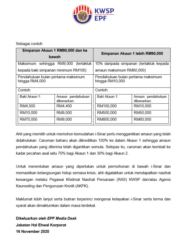 I Sinar Pengeluaran Wang Kwsp Akaun 1 Bantuan Prihatin Rakyat