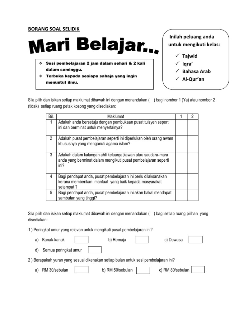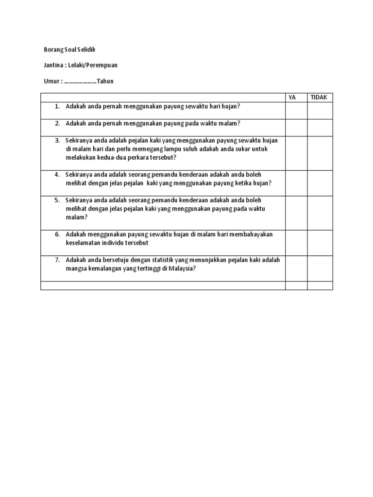 Borang soal selidik alumni iptip. Untuk contoh soal ujian akhir madrasah berstandar daerah uambd mata pelajaran al qur an hadits jenjang mi tahun pelajaran 2017 2018. BORANG SOAL SELIDIK KAJIAN AMALAN SOLAT FARDHU DI SEBUAH SEKOLAH RENDAH Arahan.