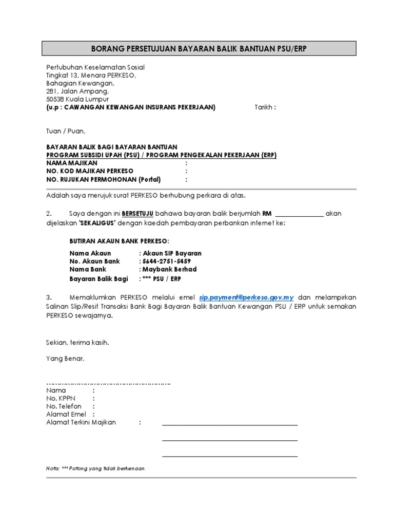 Borang Persetujuan Bayaran Balik Bantuan Psu Erp Pdf