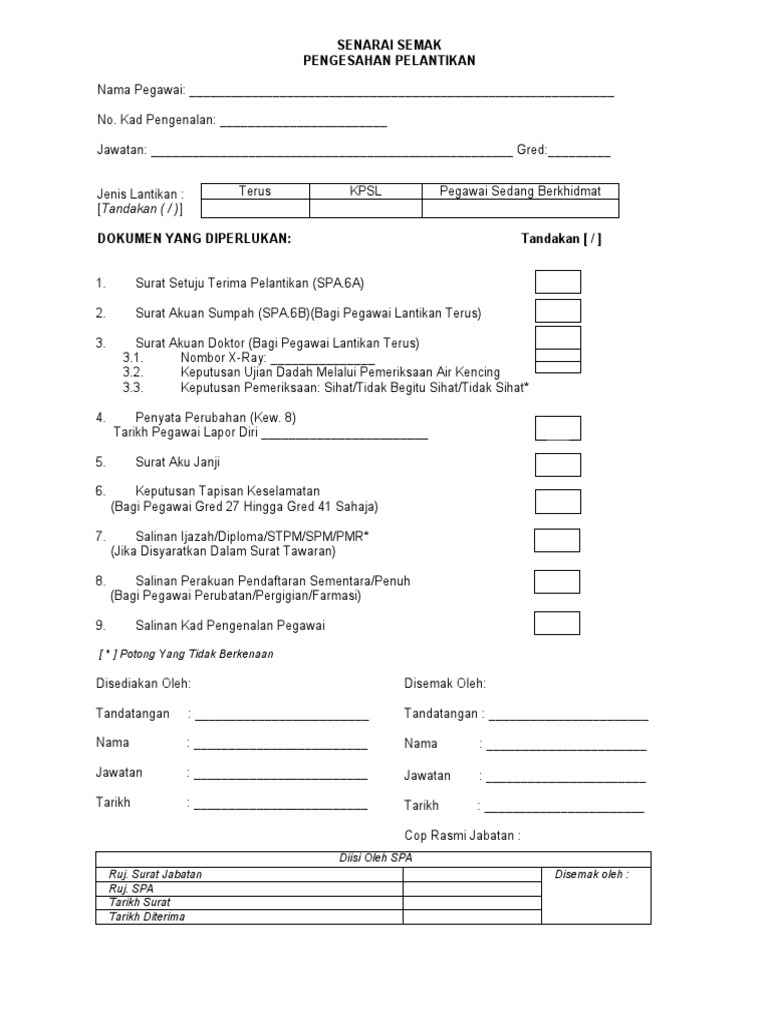 Apakah peraturan yang berkaitan dengan Pengesahan Pelantikan. For more information and source see on this link. Surat Setuju Terima Pelantikan Borang SPA 6A.
