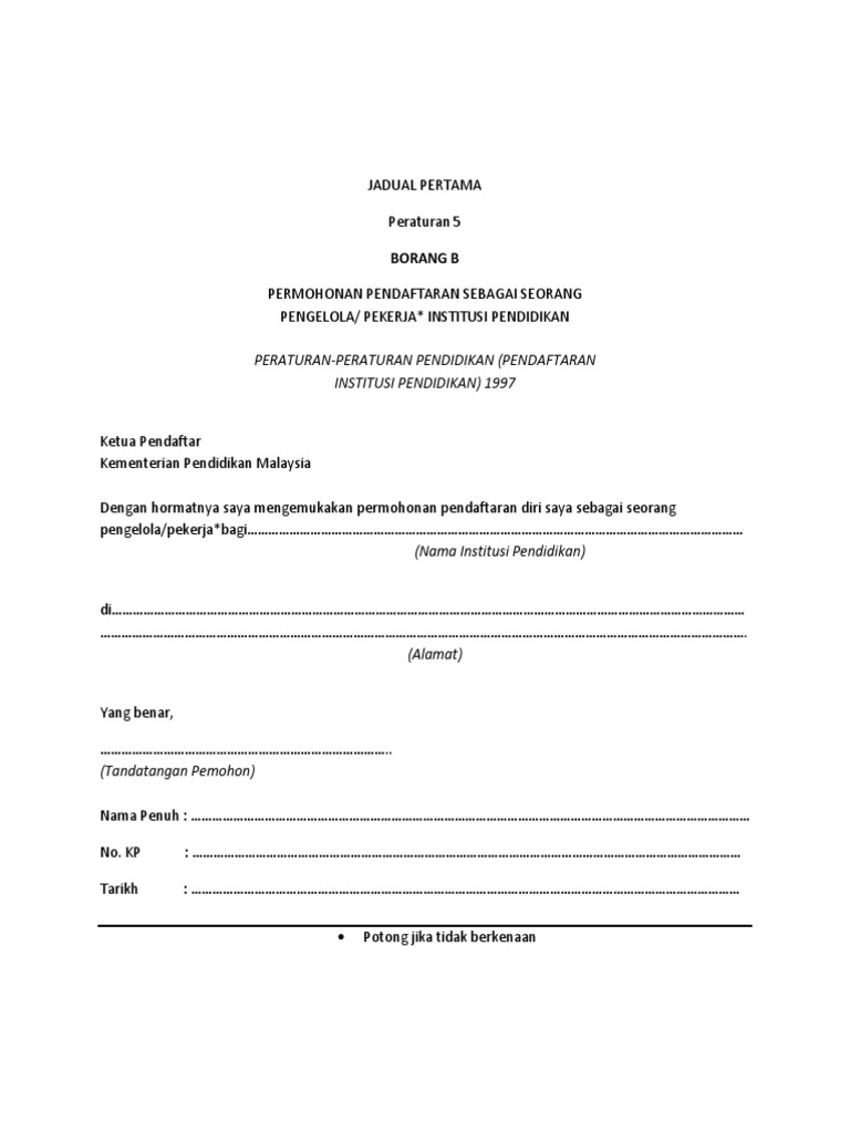Borang B Permohonan Pendaftaran Sebagai Seorang Pengelola Pekerja Ips Pdf