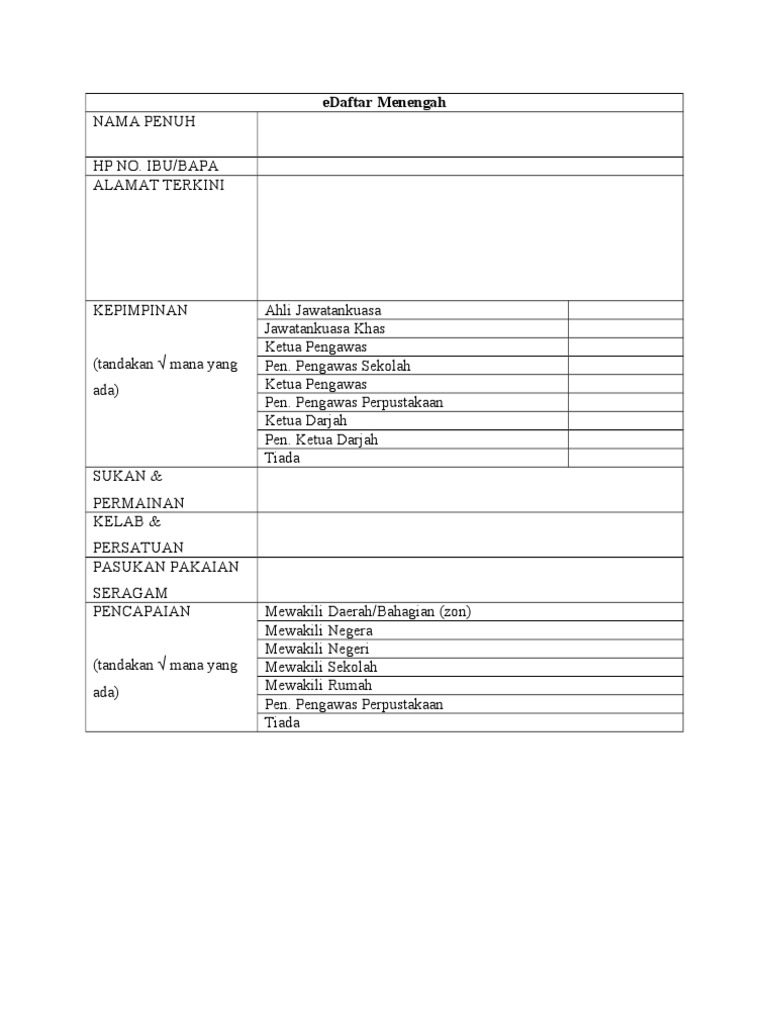 Borang Kosong E Daftar Menengah Pdf