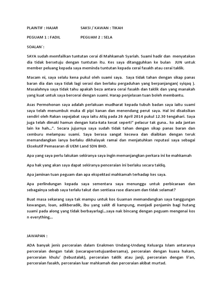 Doc Borang Permohonan Fasakh Mohd Abdul Wahab Abdullah Academia Edu