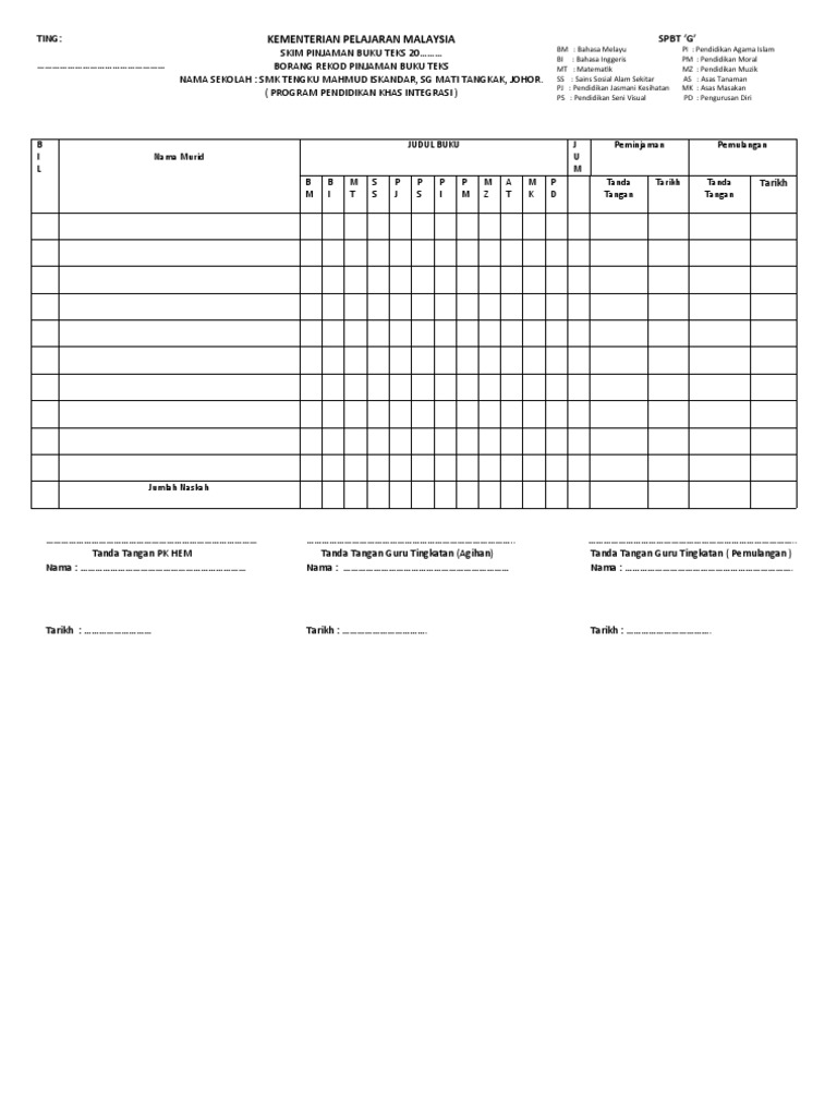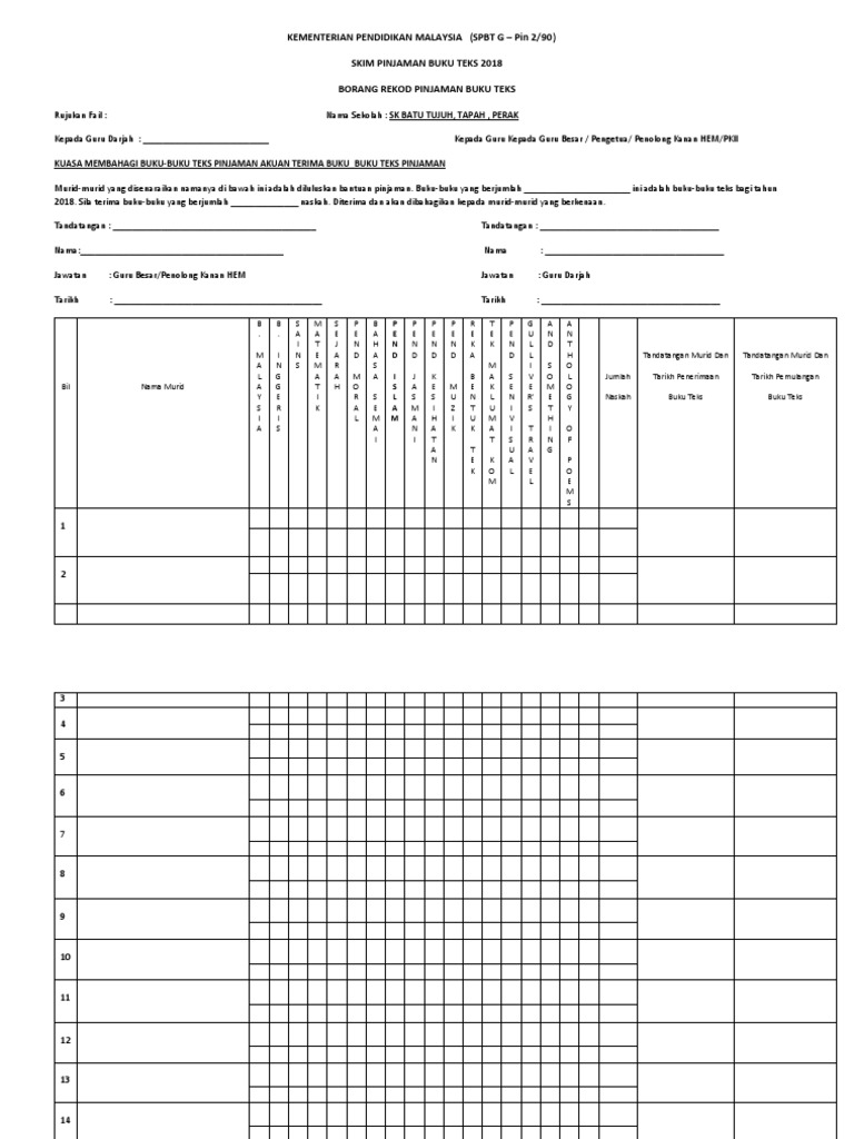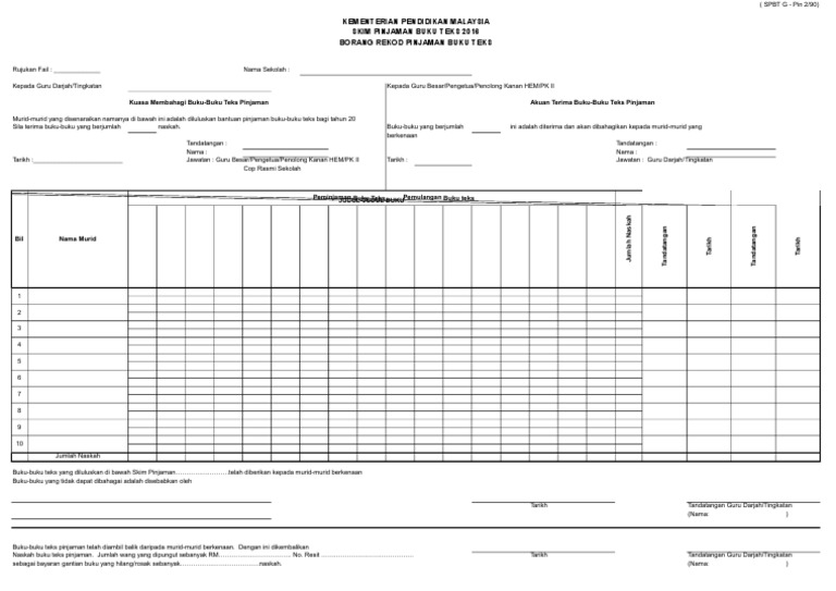 Borang Rekod Pinjaman Buku Teks Pdf