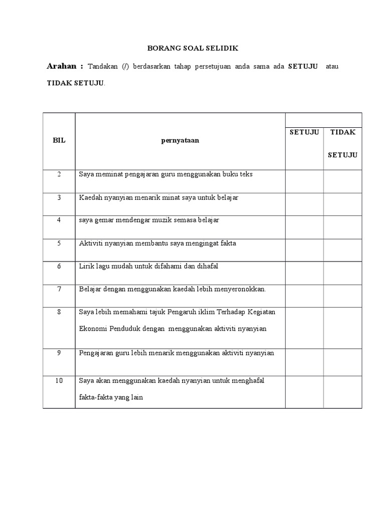 Related Posts To Contoh Borang Soal Selidik Pengajaran Dan Pembelajaran Contoh Borang Soal Selidik Pengajaran Dan Pembelajaran 2017-12-26T085800-0800 Rating. Contoh borang soal selidik guru mata pelajaran pendidikan seni visual. Merupakan langkah cara membuat soal online menggunakan fasilitas dari.