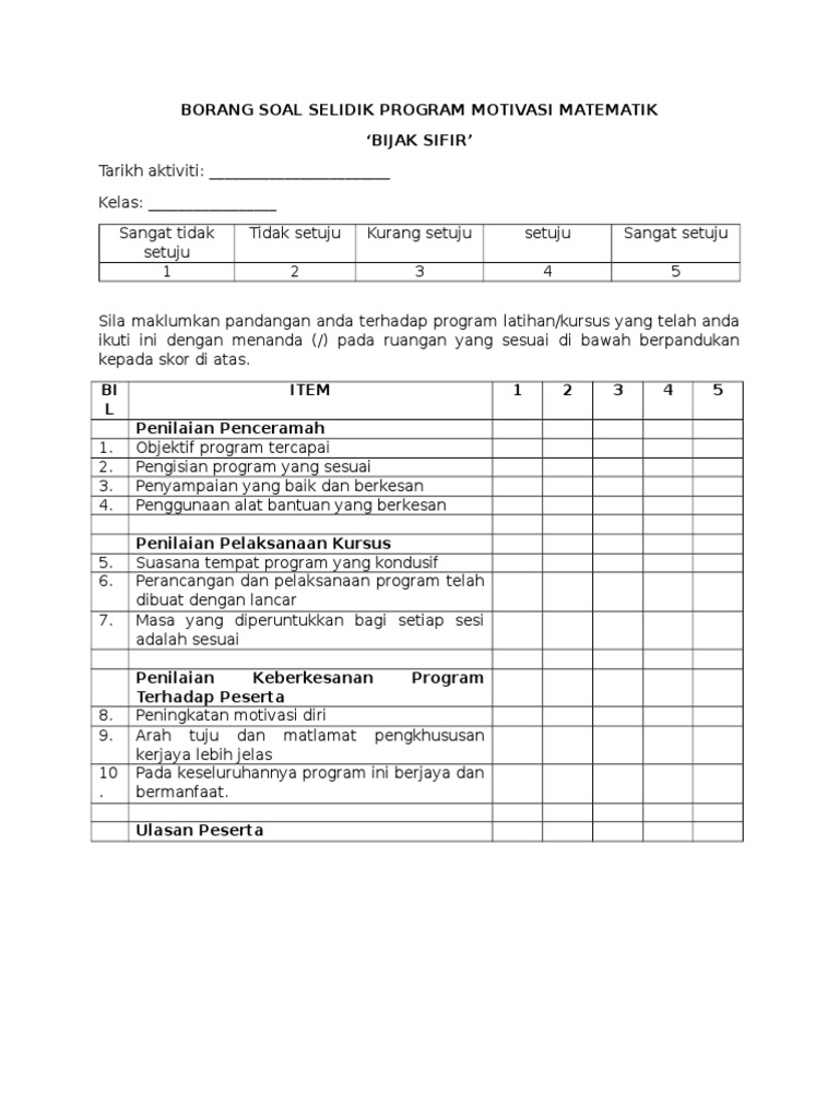 Jika anda mempunyai lebih 6 atau 7 orang untuk mendapatkan maklum balas mungkin agak sukar. BORANG SOAL SELIDIK KAJIAN KEPUASAN PELANGGAN TERHADAP PERKHIDMATAN JABATAN PENDAFTAR. Keputusan kajian mendapati bahawa tiada perbezaan yang signifikan antara guru lelaki dan perempuan.
