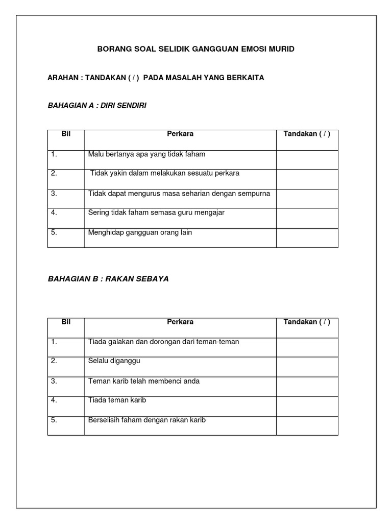 Borang Soal Selidik Gangguan Emosi Murid Pdf
